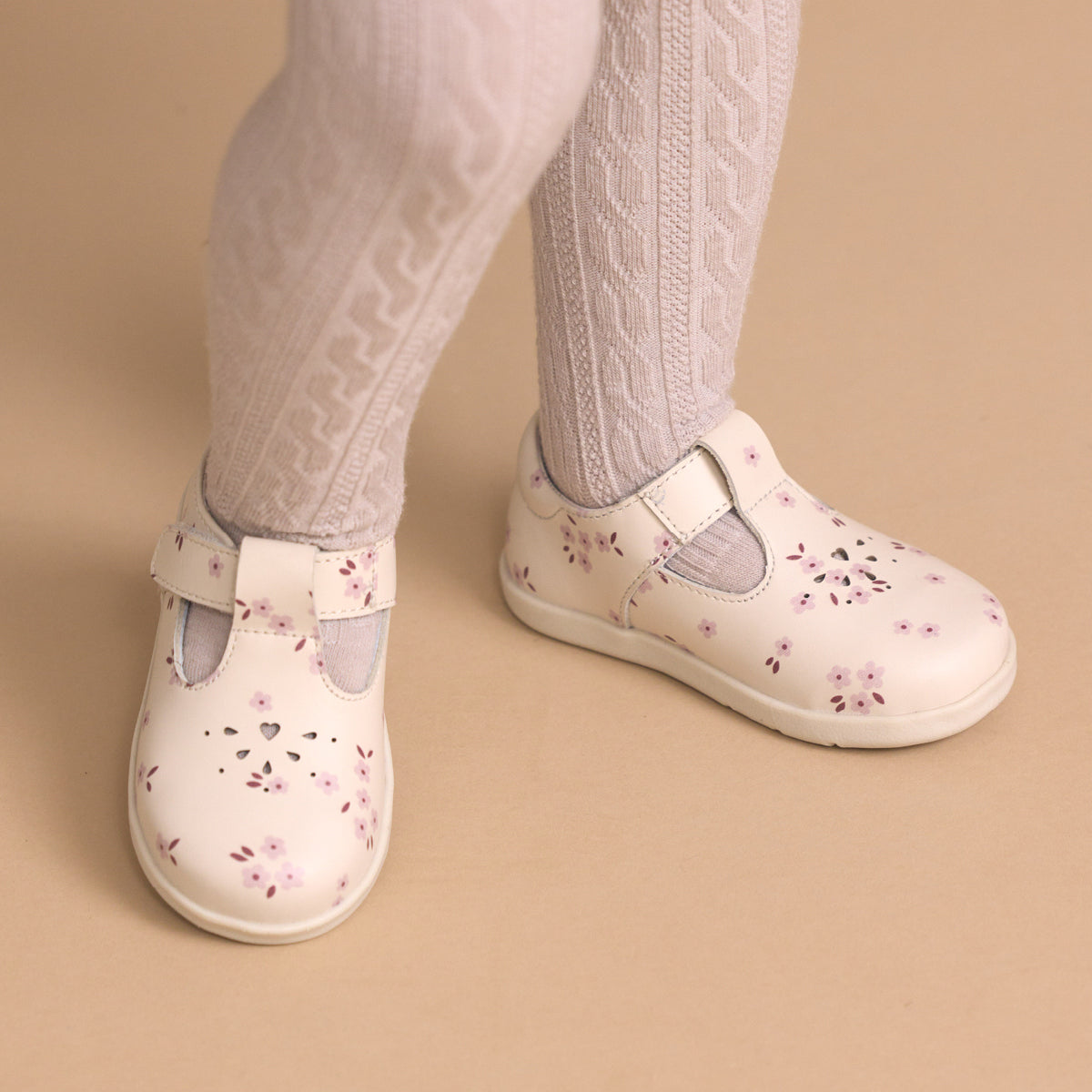 Introducing Miley - a sweet and practical T-bar shoe by Pretty Brave that brings timeless style and everyday comfort to early steps. Crafted from genuine leather with a heart cut-out detail, Miley features a hook and loop strap for a secure fit, padded ankle support, and a soft leather lining for comfort and breathability. A flexible rubber sole supports movement and balance. Podiatrist approved for healthy foot development.