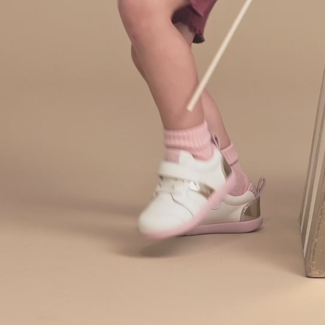 • Soft, flexible outsole to allow for baby’s natural foot development and sensory support when learning to walk